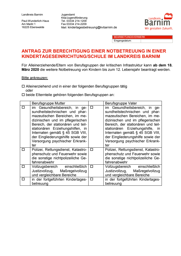 Antrag Notbetreuung LK Barnim