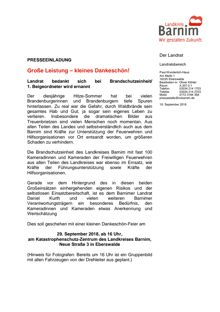 Landrat mit Danksagung an Barnimer Kammeradinnen und Kammeraden