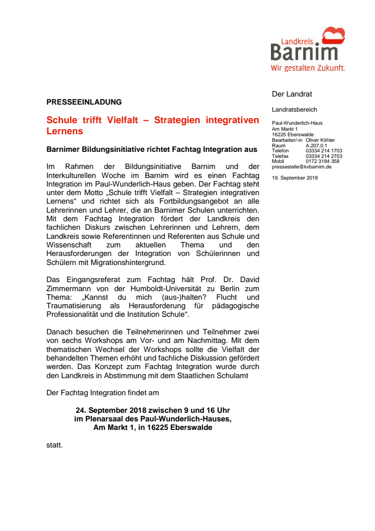 Die Bildungsinitiative Barnim lädt ein zu einem Fachtag Integration