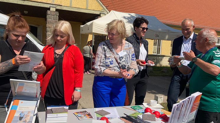 Bei guter Stimmung und bestem Wetter nutzten zahlreiche Besucherinnen und Besucher die Gelegenheit, miteinander in Kontakt zu kommen und sich über das neue Angebot zu informieren. Der Sportverein Grün Weiß Oderberg stellte als ausführende Stelle des Projektes nicht nur die Sporthalle zur Verfügung, sondern auch Kaffee und Kuchen. Im Außenbereich hatte der Kreissportbund mehrere Hüpfburgen und Spiele, wie z. B. Leitergolf, zur sportlichen Ertüchtigung bereitgestellt. Am Stand der AWO konnten die Teilnehmenden neben gesunden Ingwershots einen Alterssimulator ausprobieren, die Sparkasse war mit einem Glücksrad vertreten, ebenso die Volkssolidarität als ambulanter Pflegedienst, das Kompetenzzentrum Demenz des Landes Brandenburg und der mobile Beratungsbus des Pflegestützpunktes mit Informationen und Ansprechpartner/innen. Die Freiwillige Feuerwehr bot Bratwürste und Steaks an, sodass für jeden etwas dabei war - egal ob jung oder alt.
