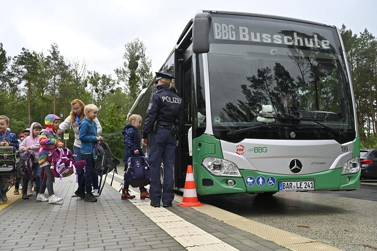 In einem Flächenland wie Brandenburg ist der Weg zur Schule oft lang - und wird daher nicht selten mit dem Bus zurückgelegt. Der Landkreis Barnim hat es sich zur Aufgabe gemacht, den ABC-Schützen das richtige Busfahren beizubringen, um so einen sicheren Schulweg zu gewährleisten. Gemeinsam mit der Polizeiinspektion Barnim, der Barnimer Busgesellschaft, der Unfallkasse Brandenburg und der Kreisverkehrswacht organisiert er deshalb bereits zum 24. Mal die Barnimer Busschule. Den Anfang machten im Schuljahr 2025/2026 die ABC-Schützen der Max-Kienitz-Grundschule in Britz.