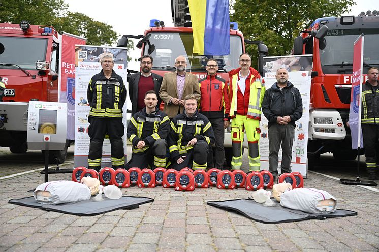 Ziel des Projekts ist es, möglichst viele Bürgerinnen und Bürger im Barnim in die Lage zu versetzen, eine sogenannte Laienreanimation durchzuführen. Hierzu werden an verschiedenen Stellen im Landkreis frei zugängliche Laien-Defibrillatoren (AED) montiert. So auch in der Gemeinde Wandlitz. Im Rahmen einer Auftaktveranstaltung für das Projekt übergaben Barnims Landrat Daniel Kurth und Claudius Kaczmarek, Geschäftsführer des Rettungsdienstes, am 16. September 2024 insgesamt 18 AEDs an die Gemeinde Wandlitz.