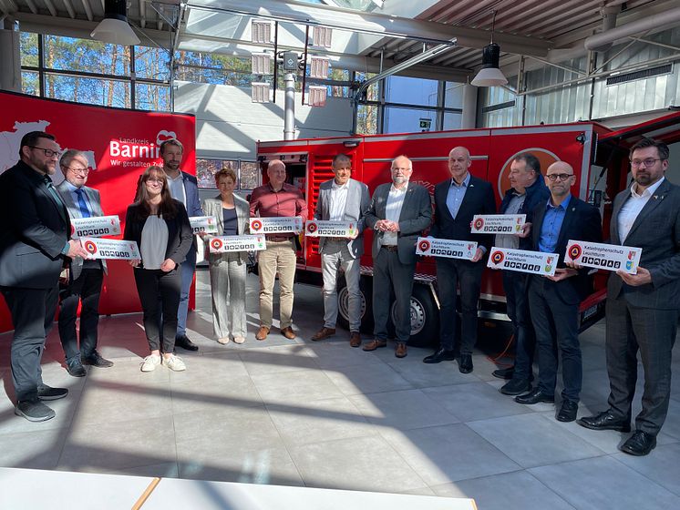 Innenministerin Katrin Lange: "Vorsorge ist besser als Nachsorge - diesem Motto sind wir mit der Unterstützung bei der Errichtung der Katastrophenschutz-Leuchttürme treu geblieben. Im ganzen Land ist ein Netzwerk entstanden, dass den Brandenburgern im Krisenfall als verlässliche Anlaufstelle dient. Ein hartes Stück Arbeit liegt hinter den Landkreisen, Städten, Gemeinden und Ämtern, aber auch dem Land. Gemeinsam wurde unter Hochdruck die Umsetzung vorangetrieben, gemeinsam überreichen wir heute die Ausstattung an die Kommunen im Landkreis Barnim. Ich bin mir sicher, hier ist der Katastrophenschutz gut aufgestellt."