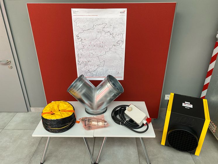 Zu den übergebenen Ausstattungsmitteln gehören u.a. Netzersatzanlagen zur Sicherstellung der Notstromversorgung, Tankanlagen zur Bereitstellung von Kraftstoff, Trinkwasserbehälter, Heizgeräte sowie begleitende Informationsbroschüren.