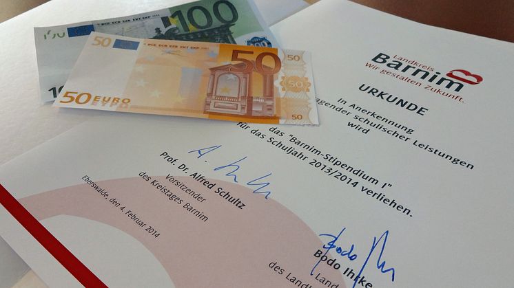 Barnimer Schülerinnen und Schüler der Sekundarstufe II haben noch bis zum 7. September 2018 Zeit, ihre Bewerbungen für das Barnim Stipendium 2018/2019 einzureichen. Das Stipendium ist ein Leistungsstipendium für außergewöhnliche hervorragende schulische Leistungen.